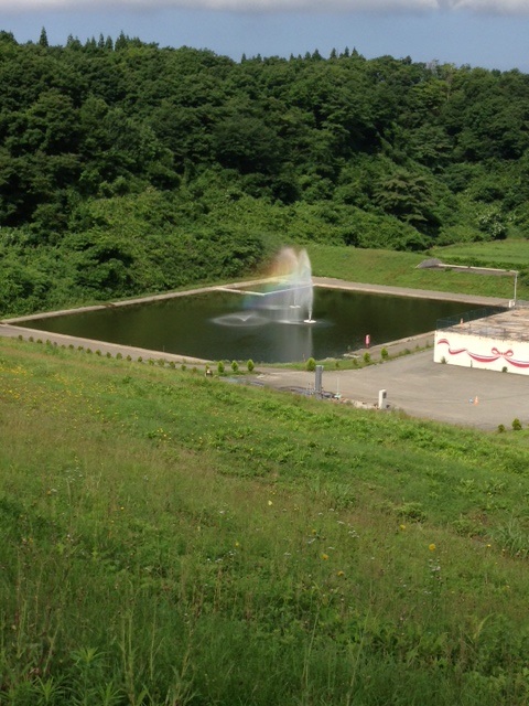 水処理施設の調整池に水中ポンプを利用した大噴水を2基設置