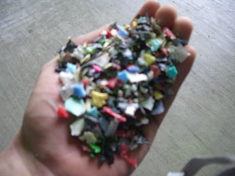 処理前の膨大な量のプラスチックや塩ビ管が処理後には五分の一