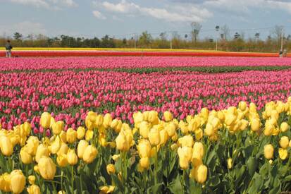運行中、新潟を通過する際、色鮮やかなチューリップ畑を横切ります。