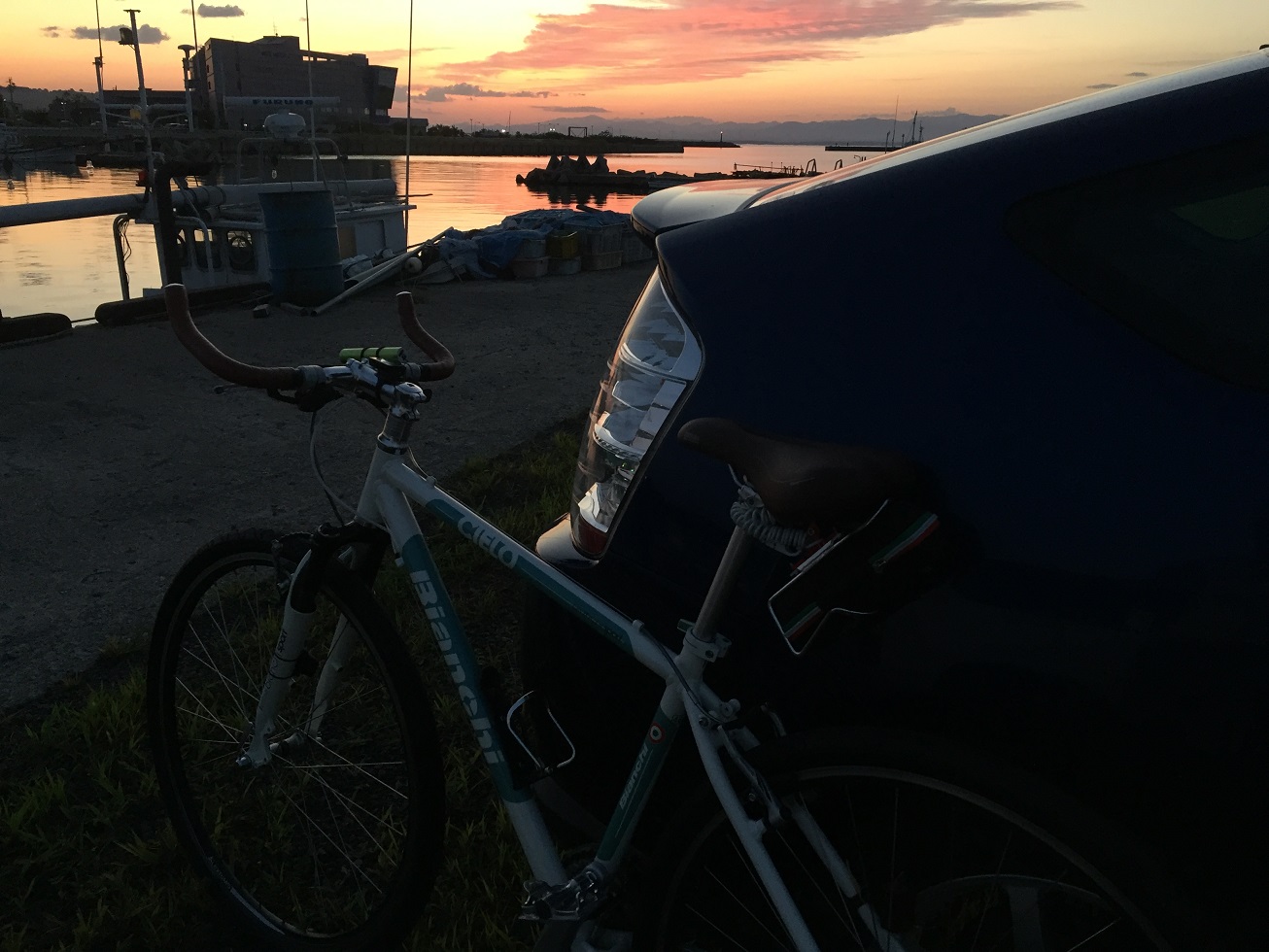 バイクを車に積み込み男鹿市船川からの出発です。