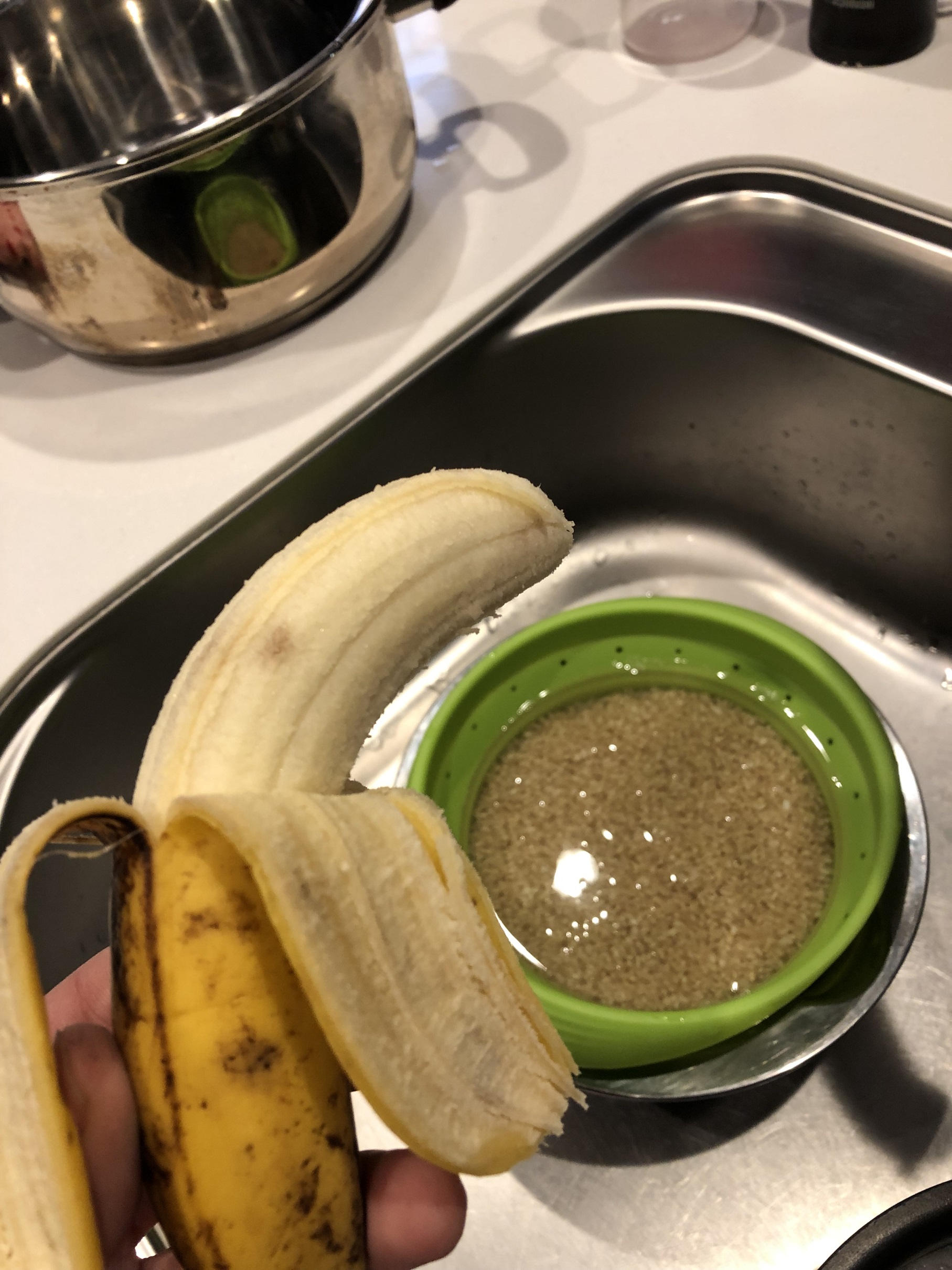 出発前にバナナを1本食べまして、玄米を水に浸して下拵えを済ませて