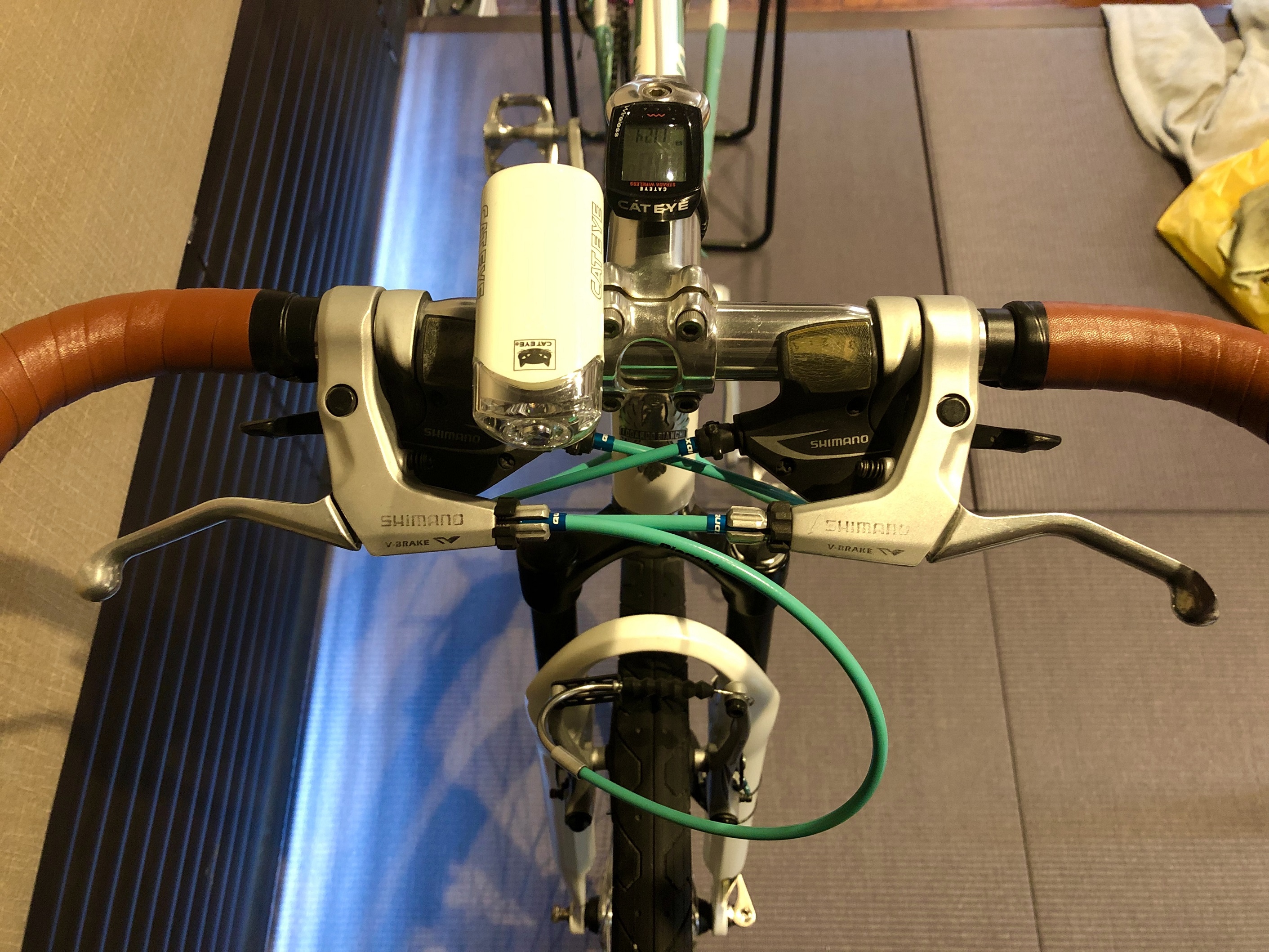 ビアンキの色「チェレステ」に統一するのにアウターケーブルと