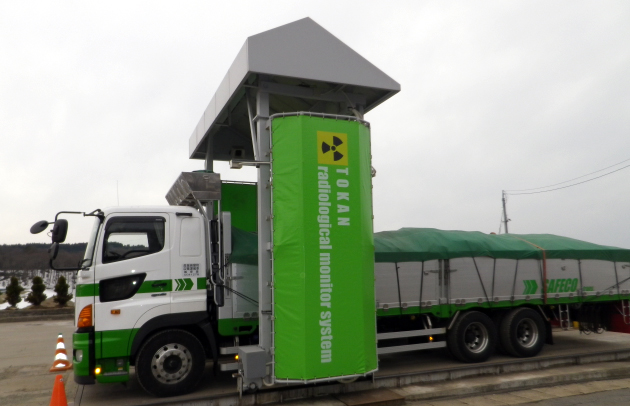 搬入時は、可動式放射線測定装置で車両1台ごとに空間線量をくまなく測定します。